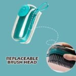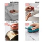 - Three replacement brush heads allow you to use it in multiple scenes. PBT high elastic bristles can be used to clean clothes and shoes: sponge brush heads can be used to clean oil stains in kitchen basins and bowls; emery brush heads can be used to clean pot bottoms and difficult-to-clean dirt or oil stains.